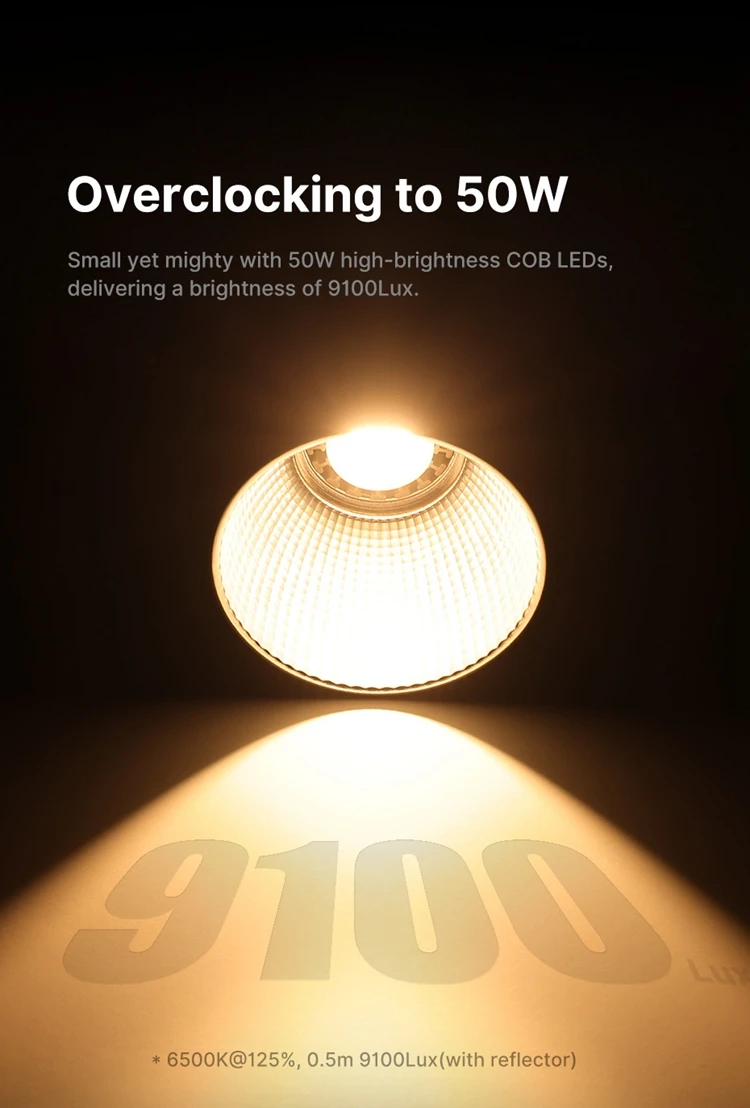 Small yet mighty with 50W high-brightness COB LEDs, delivering a brightness of 9100Lux.