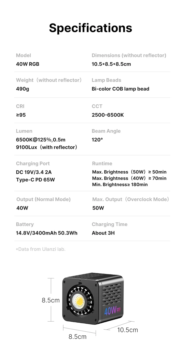 *Data from Ulanzi lab, tested at a temperature of 25°C.
